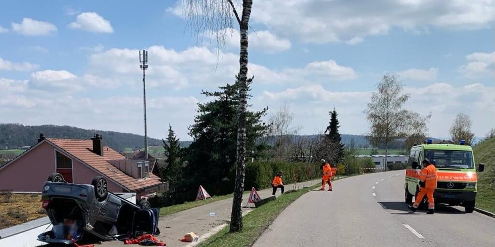 Dabei kollidierte er mit einem Betonsockel und überschlug sich, das Auto landete auf dem Dach. Der Mann wurde ins Spital gebracht.
