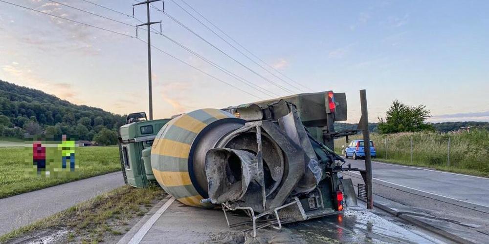 Der 34-jährige Lenker des Fahrmischers war kurz nach 5 Uhr von Eglisau in Richtung Rorbas unterwegs. Weshalb sein Gefährt nach links kippte, ist noch unbekannt. Der Fahrer verletzte sich dabei leicht und musste ins Spital gefahren werden, wie die Kantonspolizei Zürich mitteilte.