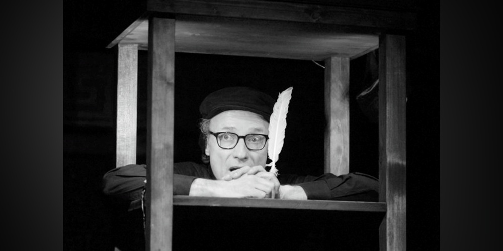 Im Stück «eingerockt und ausgesungen» versetzt sich der Schauspieler und Musiker Jürg Kienberger in die Wahrnehmung und Welt des musikbegeisterten Zwingli und zeichnet eine fiktive Biografie Zwinglis und dessen anfangs widerwillig beschrittenen Weg zum Reformator nach.