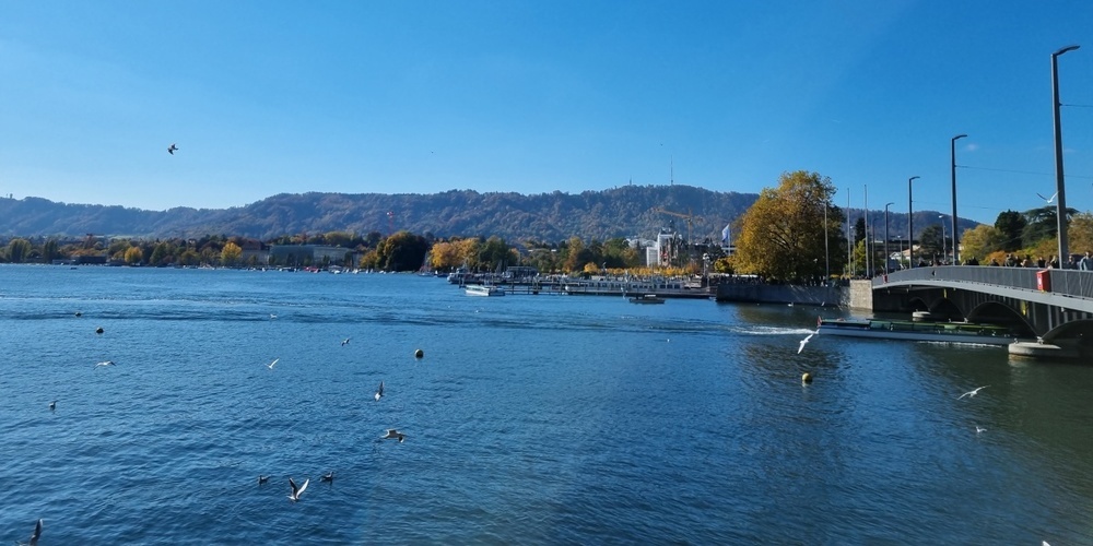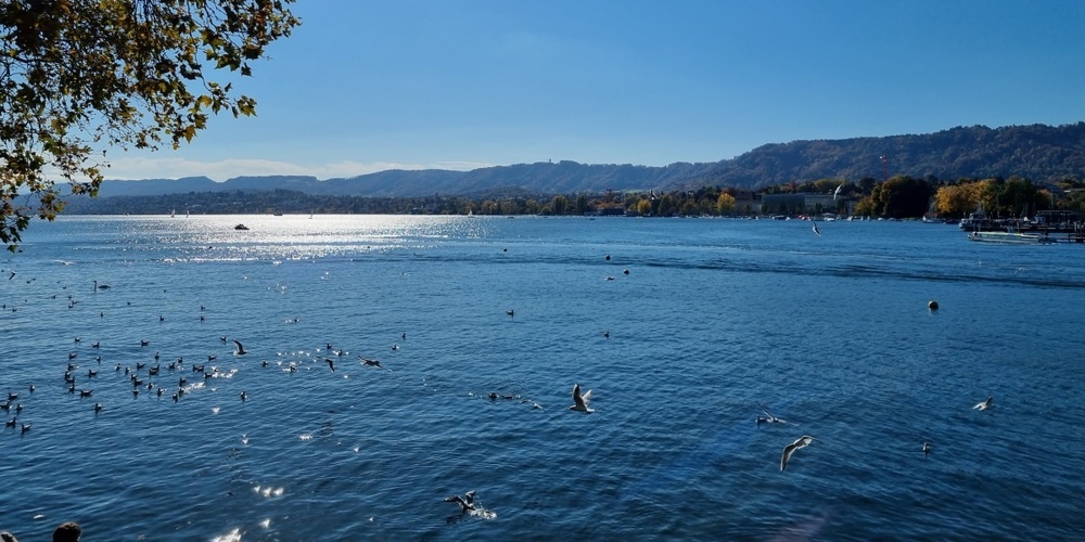 Der Zirkus Knie hat gerade seine Zelte aufgeschlagen, deshalb war der Platz besetzt, doch am See tumelten sich sehr viele Menschen und genossen die Sonne trotz einer kräftigen Bise. Die Möwen liessen sich durch den Wind über dem See treiben.
